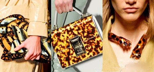 2014的春夏,豹紋和蛇紋的流行將由玳瑁取代。玳瑁以其精致的動物花紋注入女式配飾無法抗拒的優(yōu)雅。它用在每一個女式配飾上,我們都可以體會一種精心打扮的感覺。