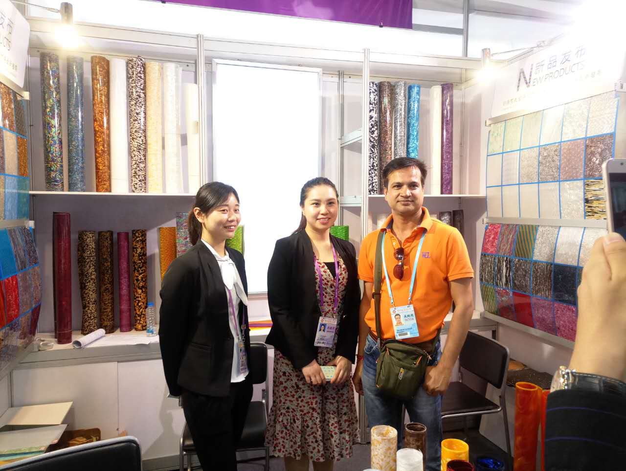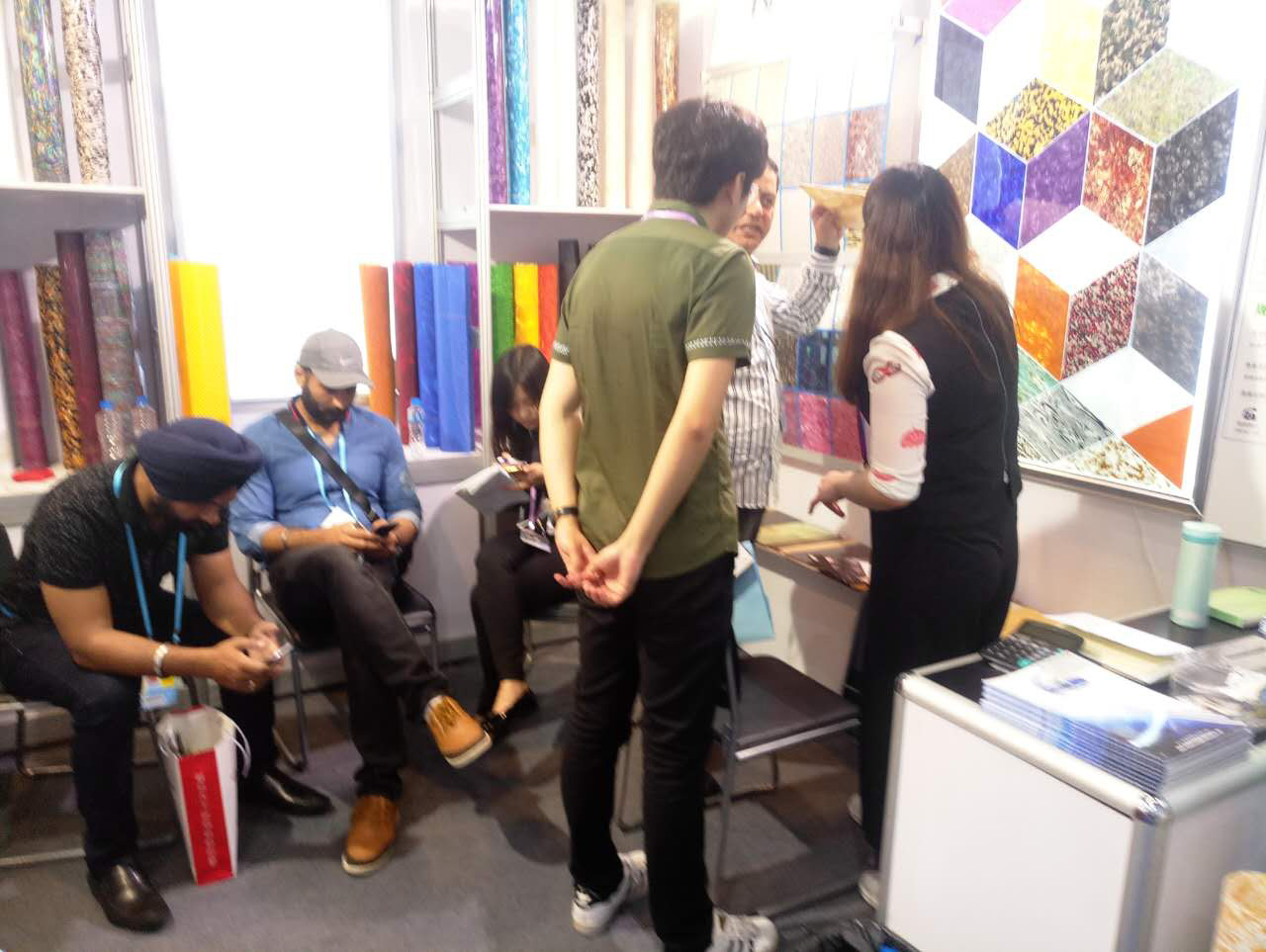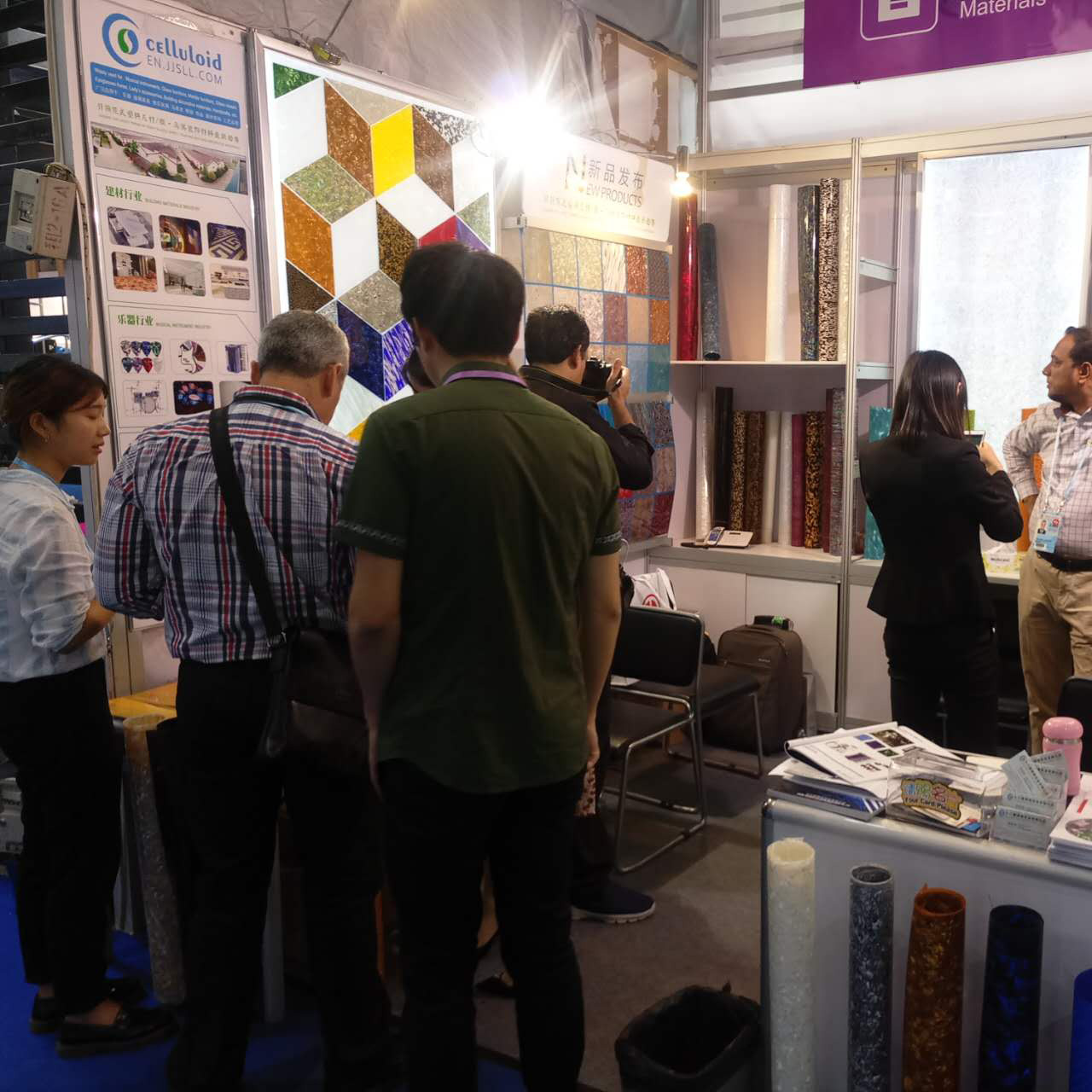 我司本屆主要展出:賽璐珞片,PVC裝飾膜及PC幻彩膜三大系列產(chǎn)品,繼上屆推出PC幻彩膜后,本屆又推出彩云、幻彩、貝殼、花式等多款系列新品,獲得了大量的國外客戶的關(guān)注和青睞。