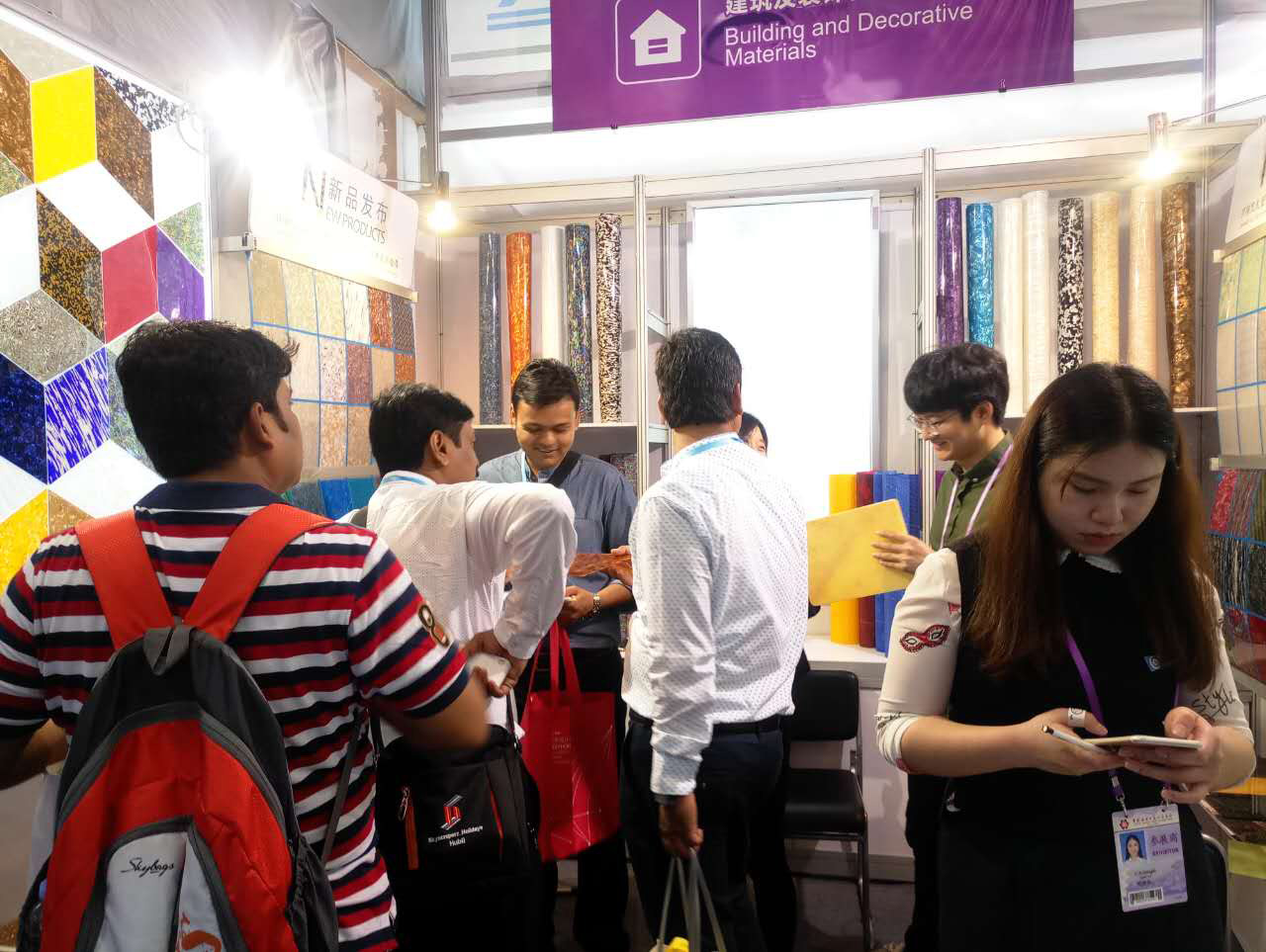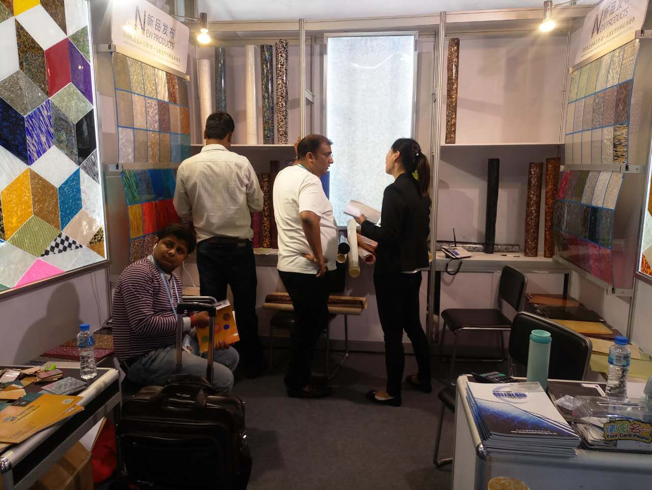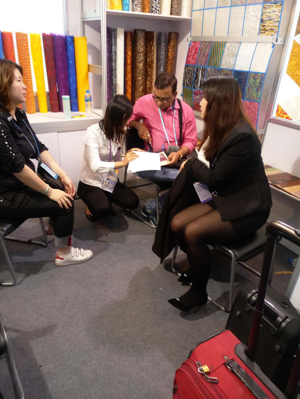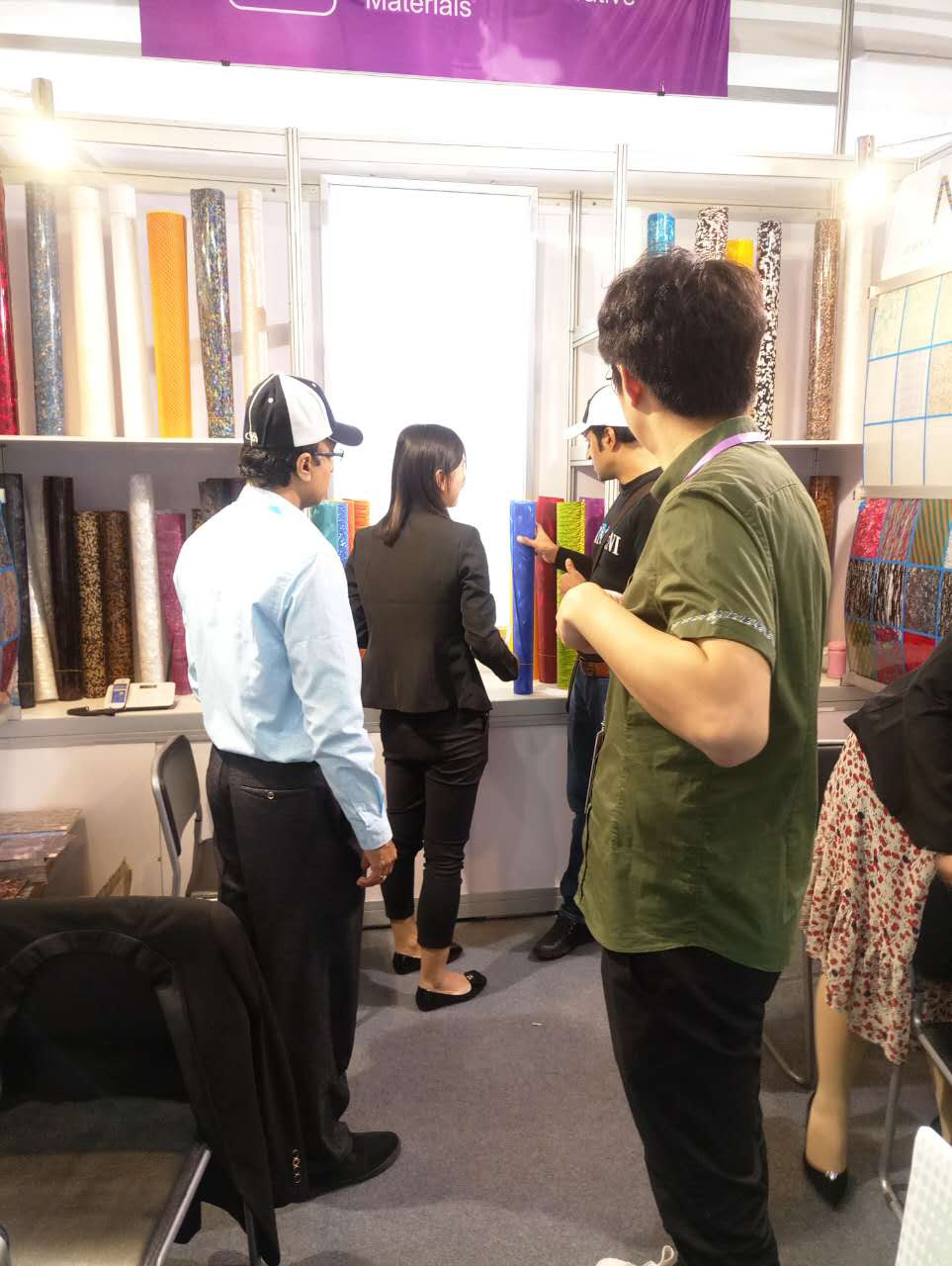 我司本屆主要展出:賽璐珞片,PVC裝飾膜及PC幻彩膜三大系列產(chǎn)品,繼上屆推出PC幻彩膜后,本屆又推出彩云、幻彩、貝殼、花式等多款系列新品,獲得了大量的國外客戶的關(guān)注和青睞。