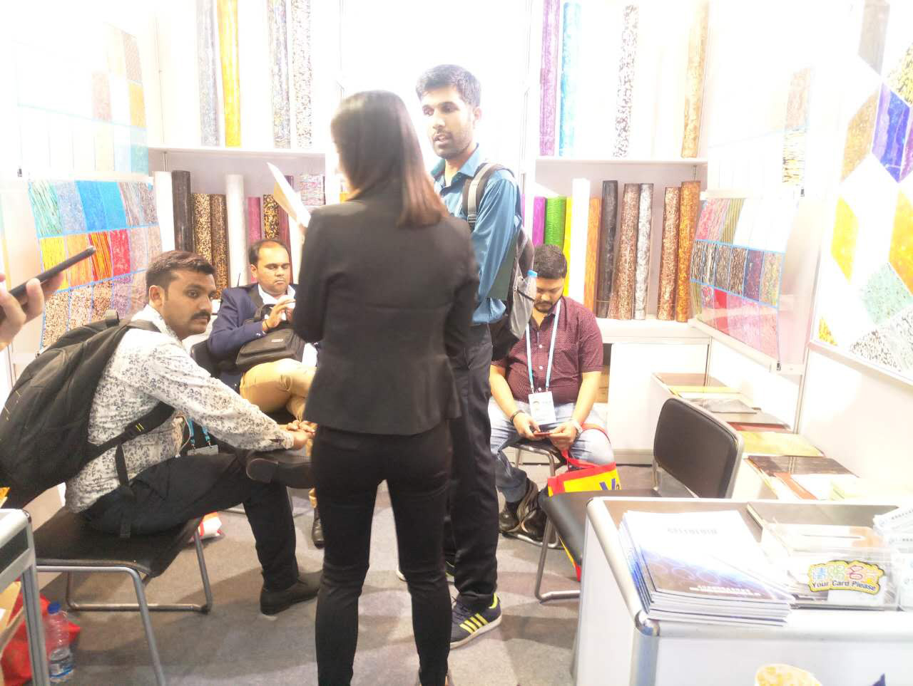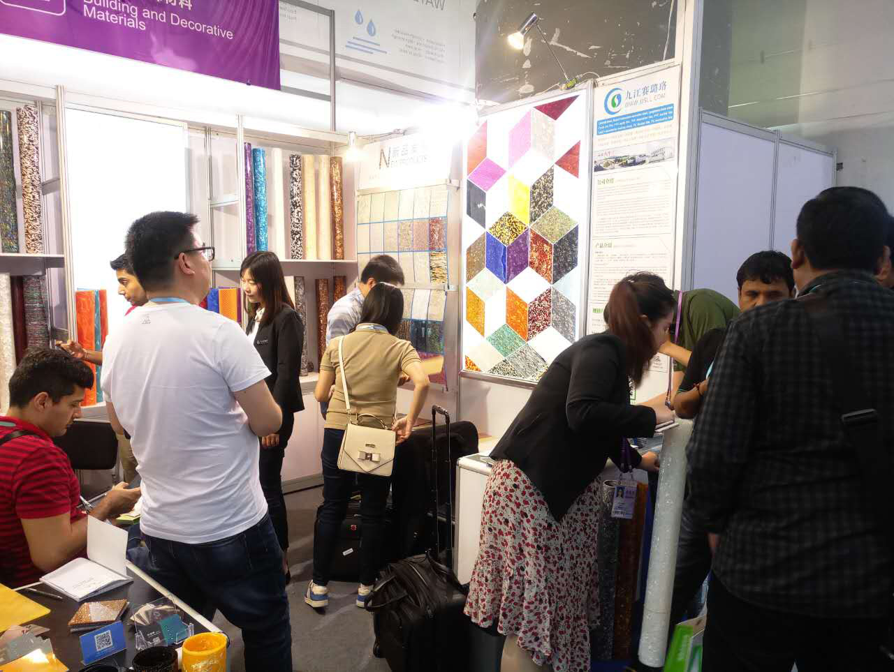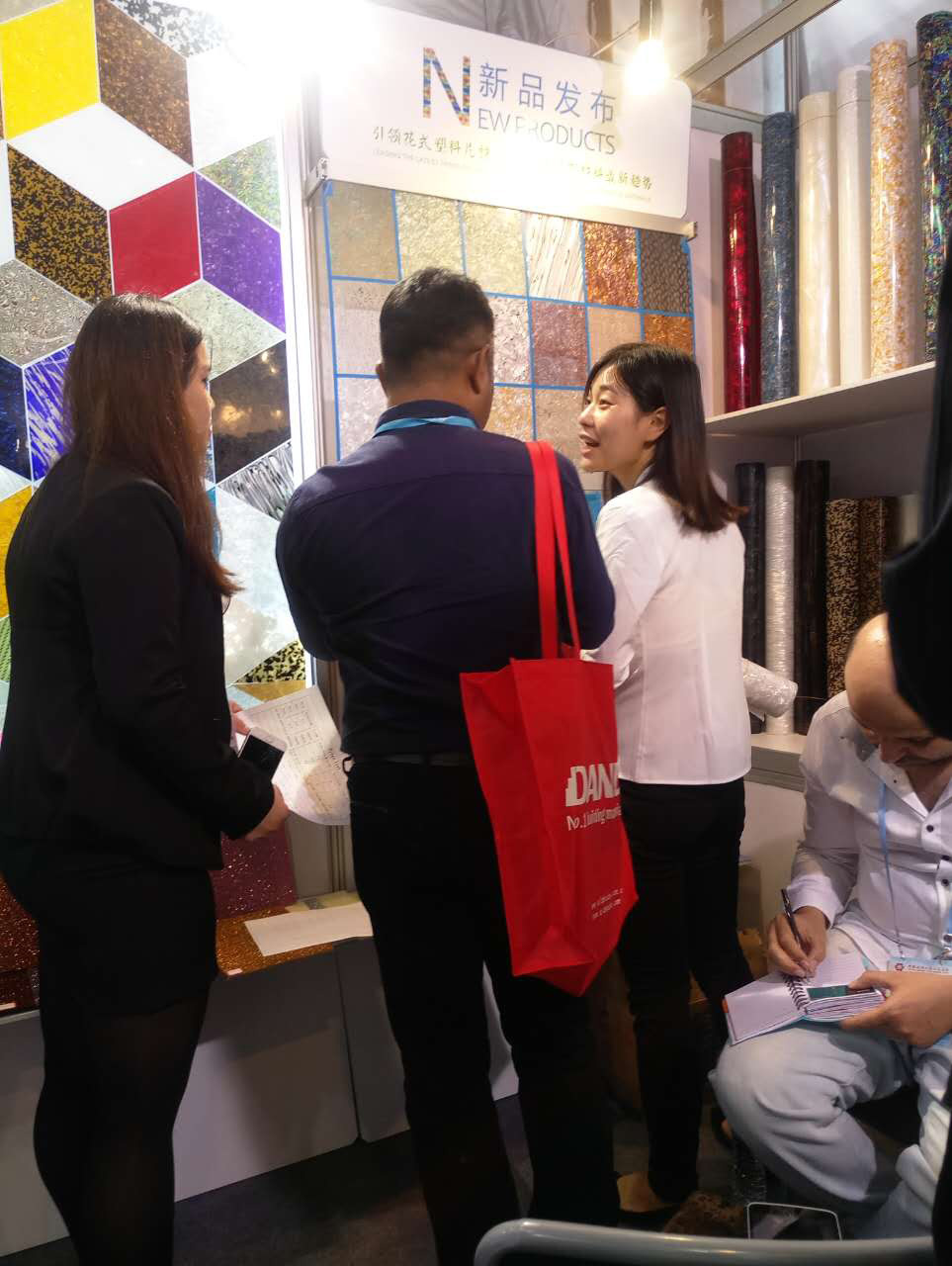 17年以來,我司加大了新品的研發(fā)和創(chuàng)新力度,截止參展前我司以研發(fā)近百款新品,新品的不斷推出充分展現(xiàn)了我司的研發(fā)和創(chuàng)新能力,很多對多彩裝飾材料產(chǎn)品感興趣的客戶駐足詢問,其中不乏一些往年積累的老客戶。