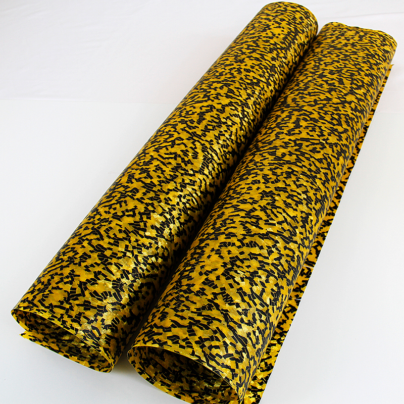 3、它質(zhì)地柔韌,不易折斷,并具有色澤鮮艷、花色繁多、閃光性好、有彈性、耐水、耐油、耐酸、強(qiáng)度高、容易加工成形等。